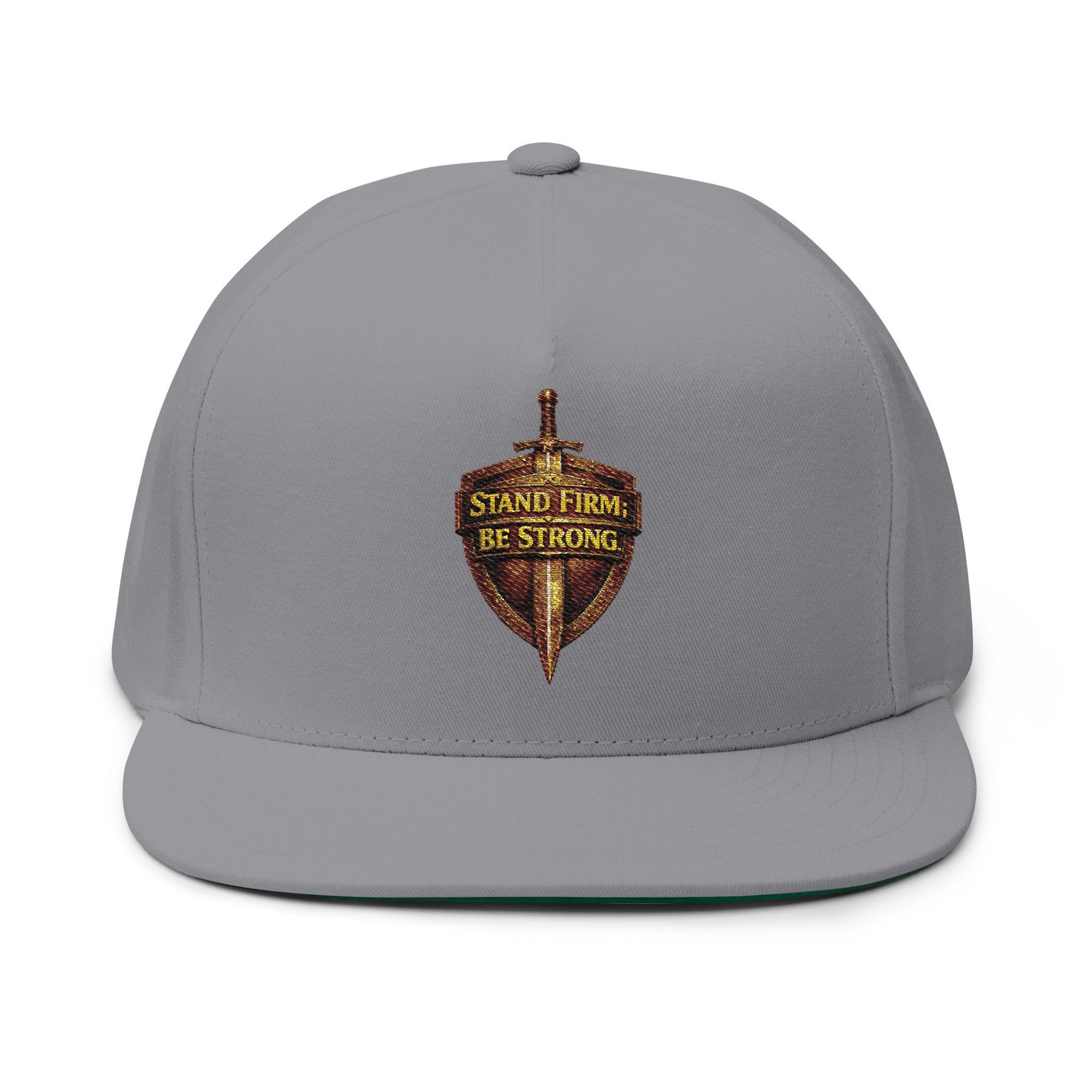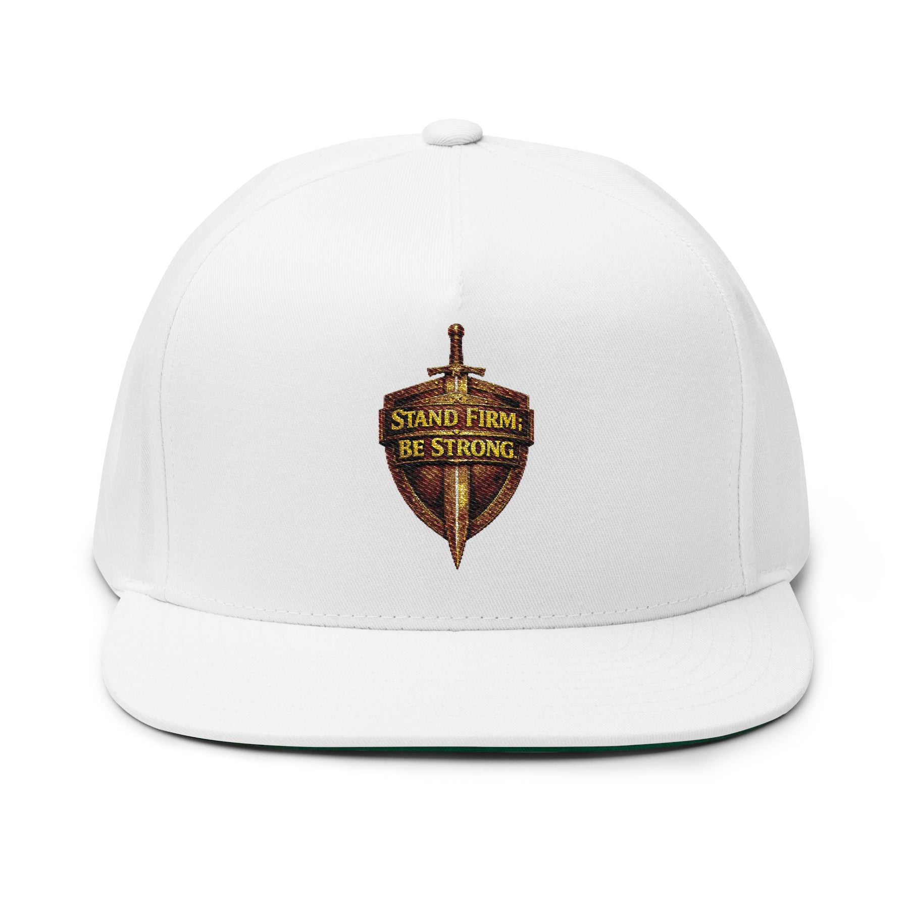 The embroidered Flat Bill Cap is a stylish, must-have accessory that adds a fresh touch to any collection. Made from 100% cotton twill, this breathable and durable cap offers a high-profile, five-panel structure for a bold look. Featuring a green undervisor and sewn eyelets, it combines classic style with modern flair.