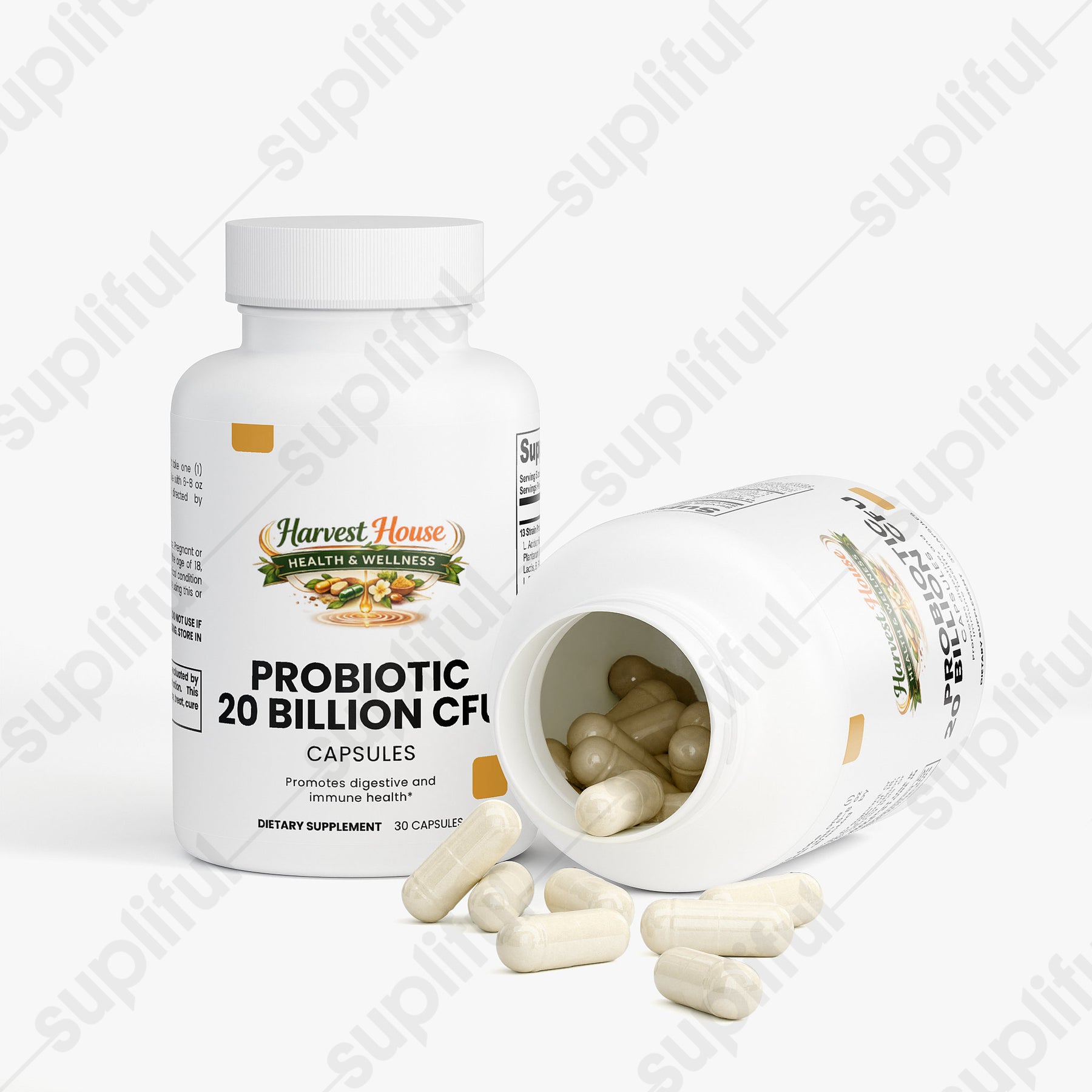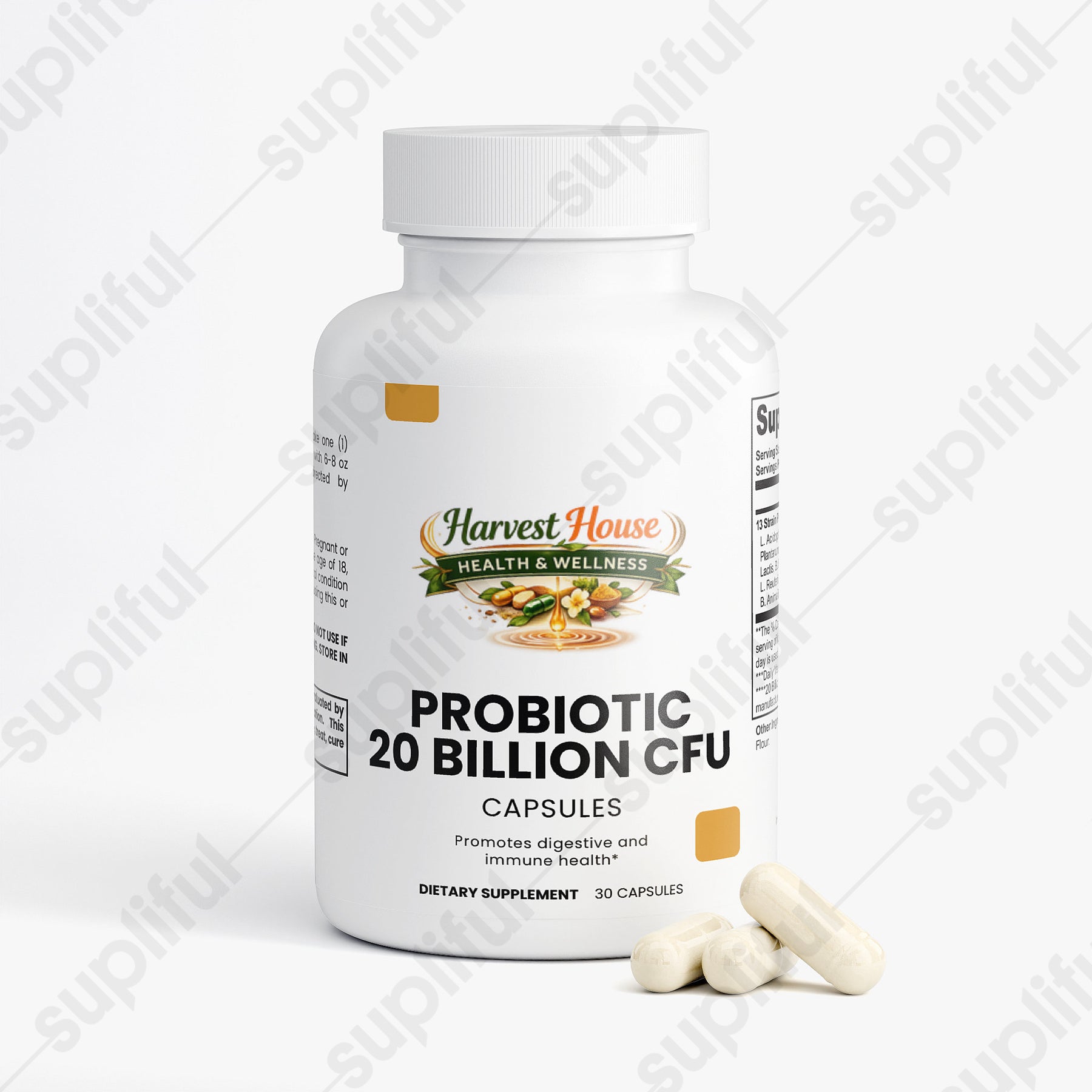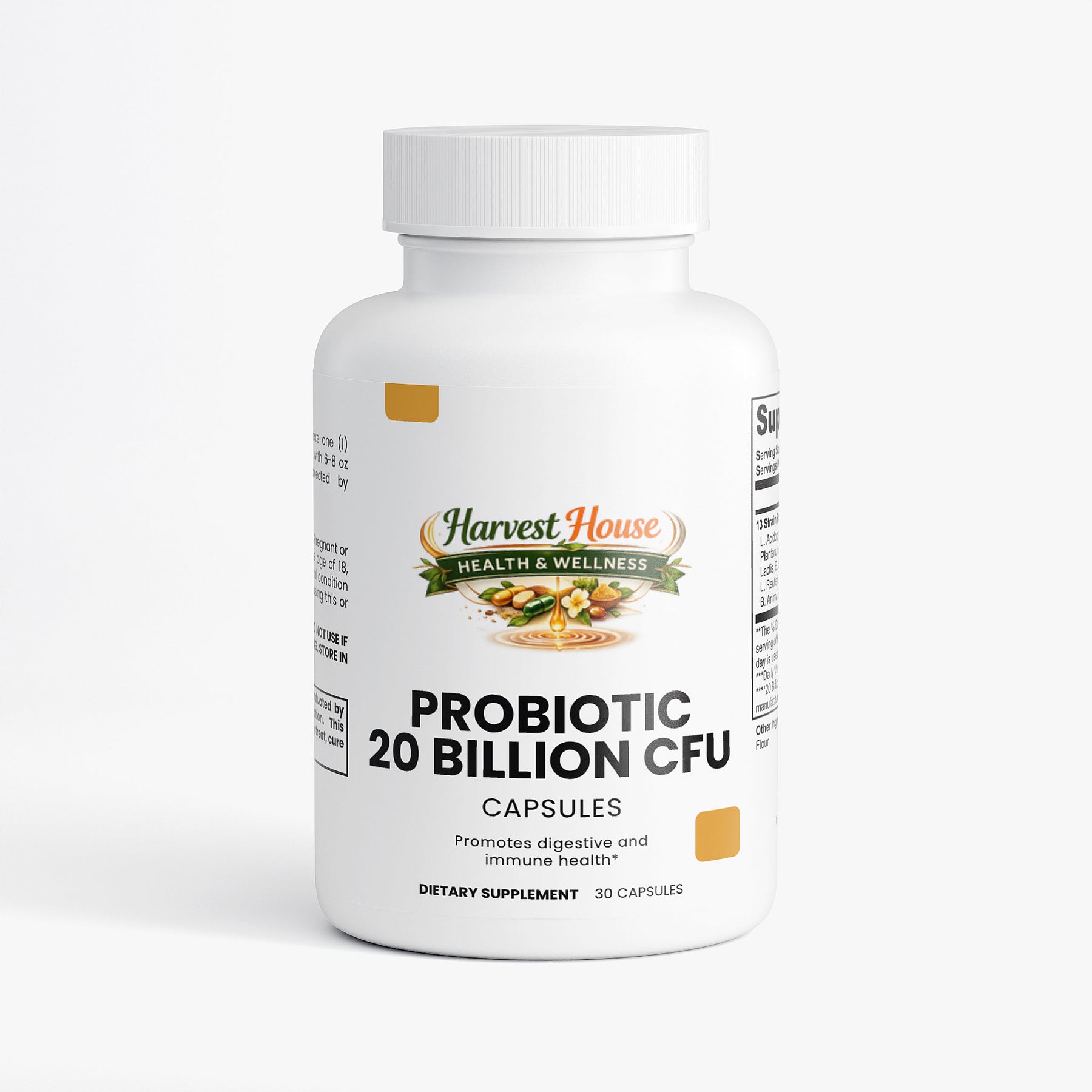 This probiotic dietary supplement is specially formulated to support digestive and immune health through a carefully selected blend of beneficial bacteria. Each capsule contains a robust blend of probiotic strains such as L. Acidophilus, L. Rhamnosus, B. Lactis, among others, complemented by Brown Rice Flour and encapsulated in a vegetable capsule. Designed for daily intake, this supplement aims to enhance the balance of gut flora, promote digestive health, and support the immune system, leveraging the natural benefits of probiotics to improve overall wellness without relying on artificial additives.*